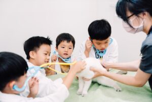 2019年台灣毛小孩數量已正式超過真正小孩的數量,讓孩子們體驗獸醫師執業的工作內容,理解動物也是家人一份子,學習照顧與保護動物的知識,培養孩子們的同理心及責任感。穿上獸醫師袍40分鐘的體驗過程,搶先曝光全新動物醫院空間,完訓後獲得小小獸醫師證書。